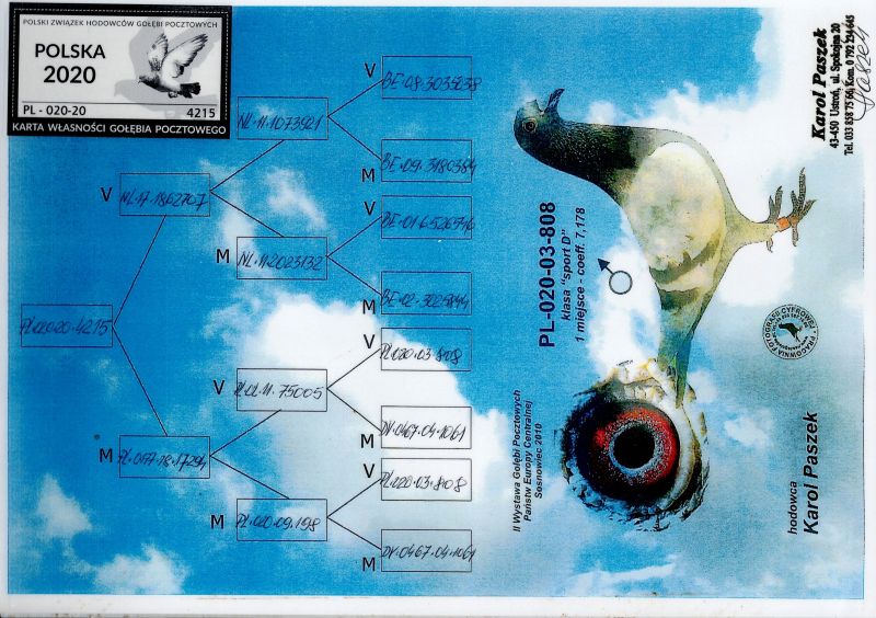 Oryginalny gołąb z hodowli Karola Paszka. Gołąb został zakupiony u Karola Paszka jako młody. Więcej informacji u hodowcy Bogdana Nieradki pod nr tel. +48 693 432 766 Zapraszam na swój kanał www.youtube.com/@BogdanNieradka