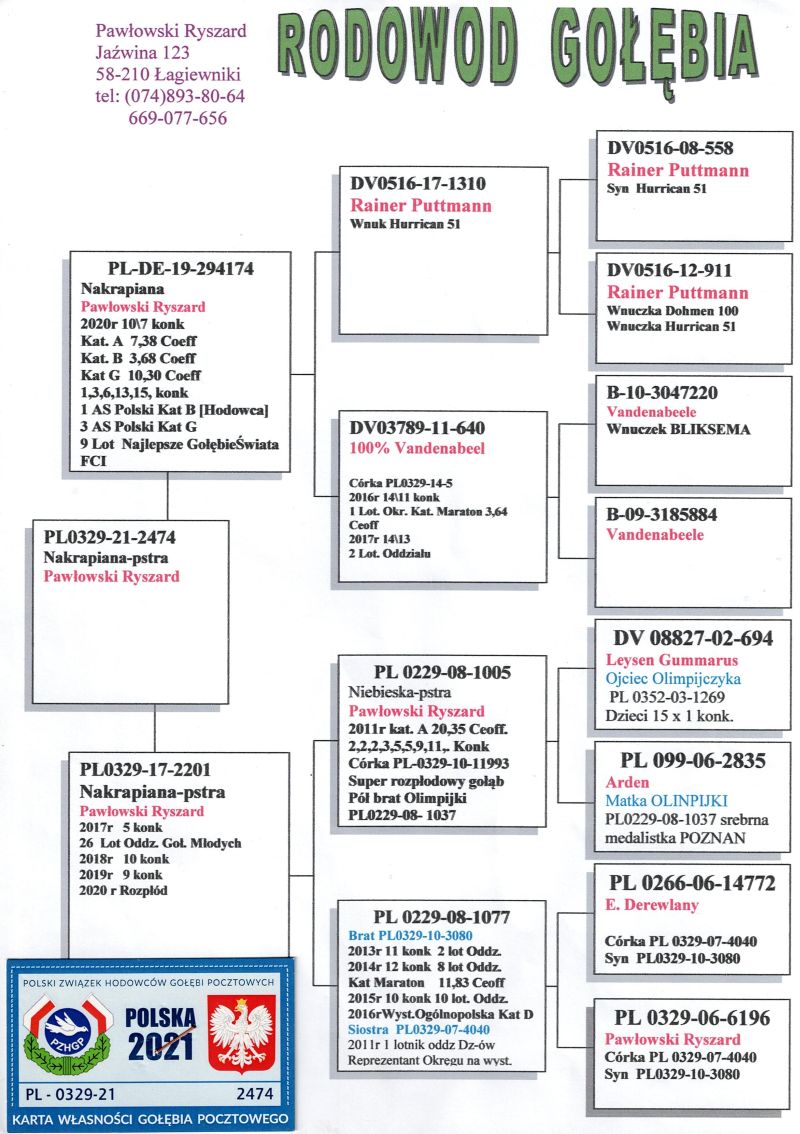 PL-0329-21-2474 oryg. Ryszard Pawłowski - syn 9 tego gołębia świata