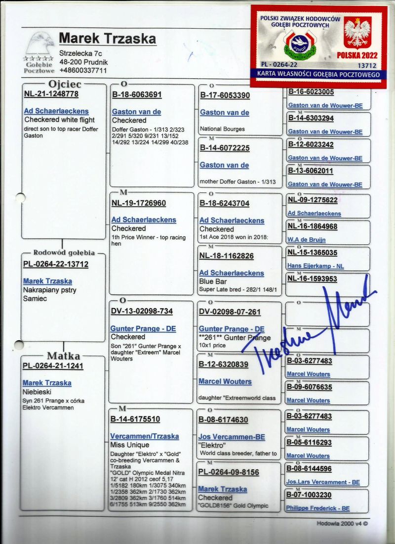 Oryginalny gołąb z hodowli Marka Trzaski. Szczegóły pochodzenia w rodowodzie. Więcej informacji pod nr tel. 507-539-168 *koszt transportu 180 zł