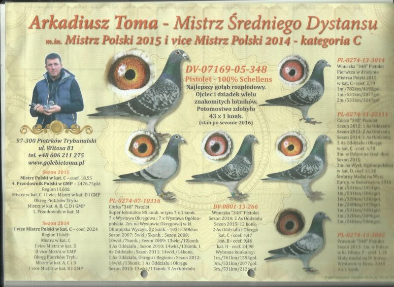 Oryginalny gołąb z hodowli Arkadiusz Toma. Szczegóły pochodzenia w rodowodzie. Więcej informacji pod nr tel. 507-539-168 *koszt transportu 180 zł