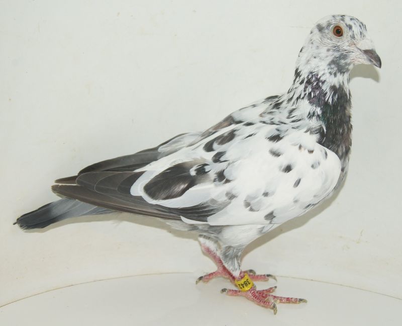 Teraz już całkowicie wypierzony - łaciaty super samczyk, wnuk wybitnej samicy rozpłodowej "17915" oraz prawnuk "17828" - najlepszego lotowego syna "461" !
