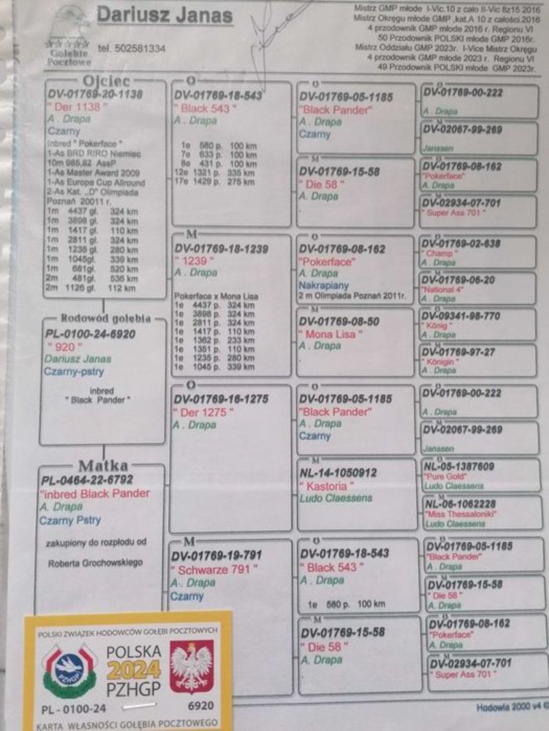 Płeć: samiec Hodowca - rasa: Oryg Czuba Zbigniew Zakończenie: 27.11.2025 godz. 18:56