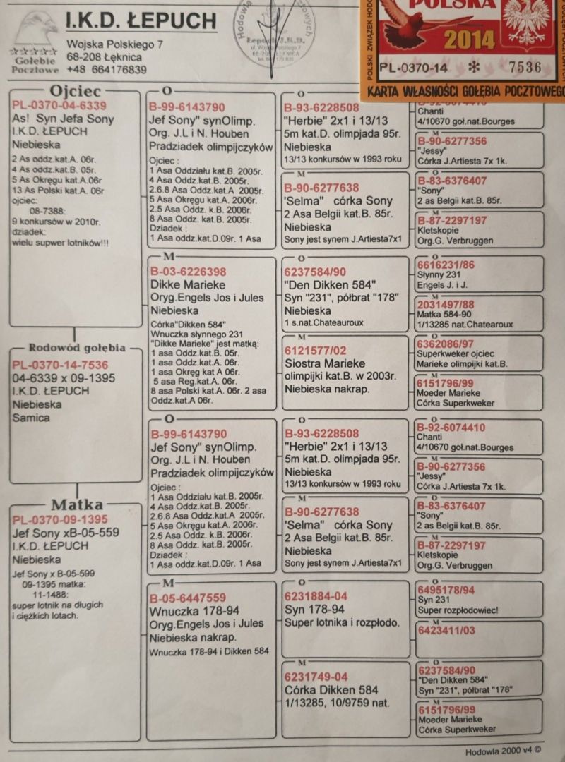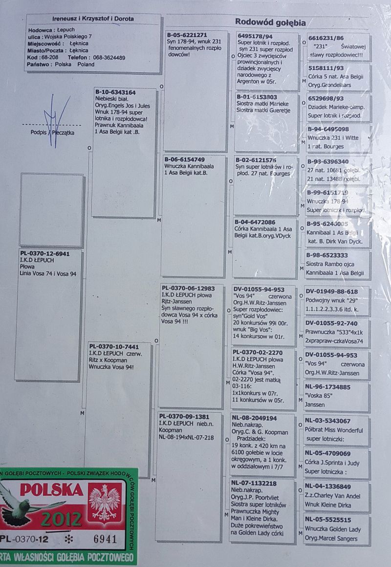 Z POWODU ZMIANY LOKALIZACJI GOŁĘBNIKA LIKWIDACJA GOŁĘBI RAZPŁODOWYCH.ORGINALNY SAMCZYK SEKUŁA INBRED JEF SONY POZOSTAŁE INFORMACJE W RODOWODZIE.MŁODE Z GOŁĘBNIKA ROZPŁODOWEGO WYWALCZYŁY W 2023/24/25 MISTRZ SEKCJI,W 2023 II PRZODOWNIK ODDZIAŁU,W 2024- I V-CE MISTRZ ODDZIAŁU,2025-I V-CE MISTRZ ODDZIAŁU.W 2024 II PRZODOWNIK OKRĘGU, 3 i 9 nagroda w kat F ZA STANDARTD NA WYSTAWIE OGÓLNOPOLSKIEJ.KOSZT WYSYŁKI POKRYWA KUPUJĄCY,PO WYGRANIU WPŁATA NA KONTO.POLECAM DO DALSZEJ HODOWLI