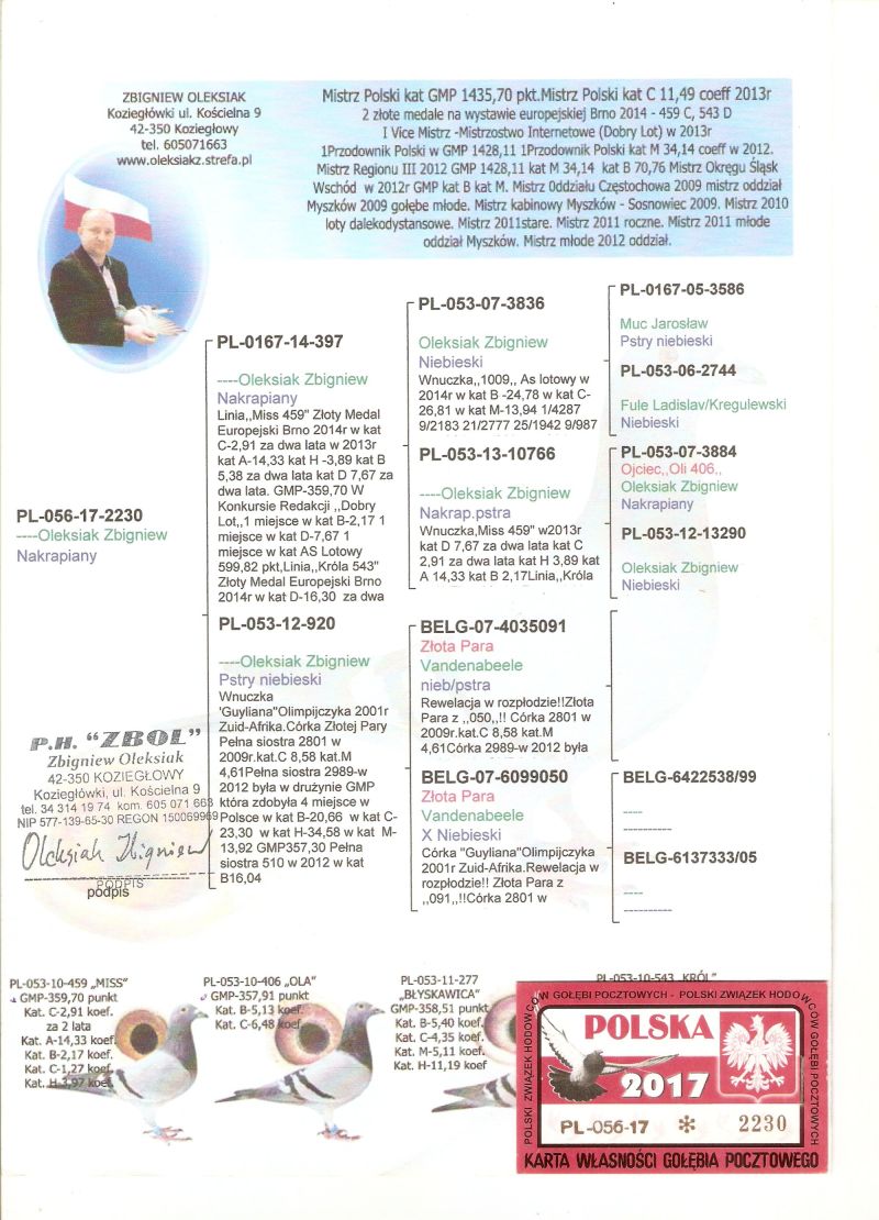 Z POWODU ZMIANY LOKALIZACJI GOŁĘBNIKA LIKWIDACJA GOŁĘBI RAZPŁODOWYCH.SAMICZKA ZBIGNIEW OLEKSIAK LINIA ZŁOTA PARA-MISS.MŁODE Z GOŁĘBNIKA ROZPŁODOWEGO WYWALCZYŁY W 2023/24/25 MISTRZ SEKCJI,W 2023 II PRZODOWNIK ODDZIAŁU,W 2024- I V-CE MISTRZ ODDZIAŁU,2025-I V-CE MISTRZ ODDZIAŁU.W 2024 II PRZODOWNIK OKRĘGU, 3 i 9 nagroda w kat F ZA STANDARTD NA WYSTAWIE OGÓLNOPOLSKIEJ.KOSZT WYSYŁKI POKRYWA KUPUJĄCY,PO WYGRANIU WPŁATA NA KONTO.POLECAM DO DALSZEJ HODOWLI