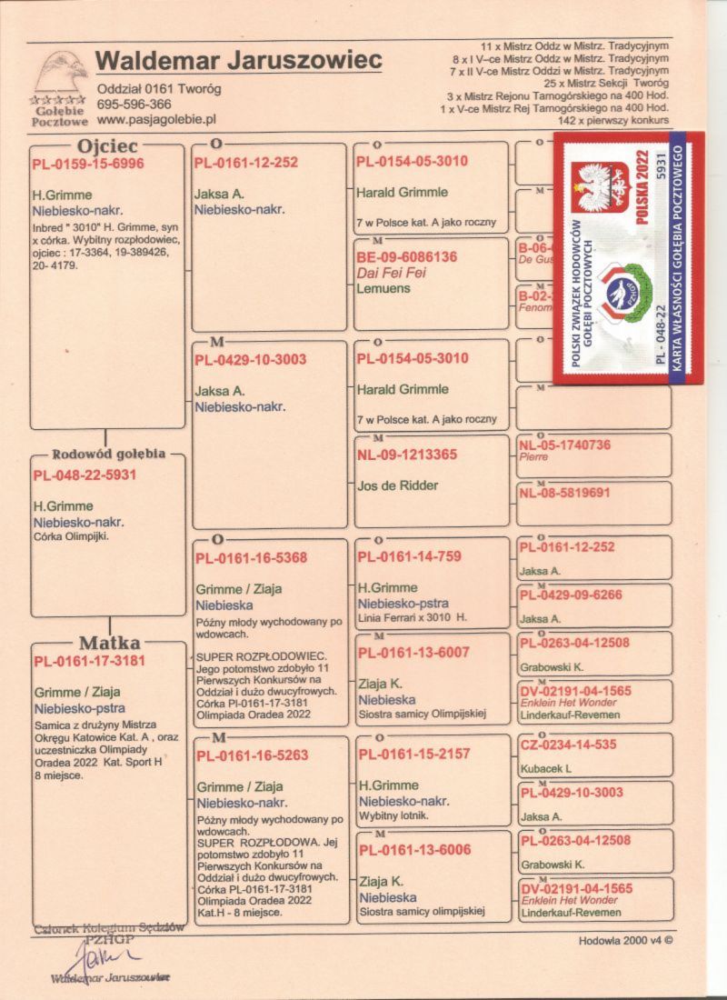 DV-03083-23-530 Oryg.Y.Gudz Golab z golebnika lotowego z Konkursami!