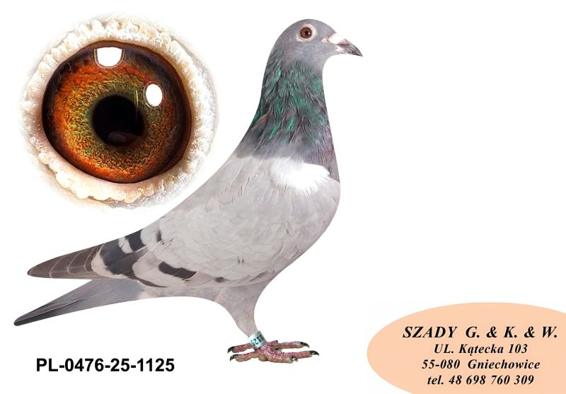 Witam. Gołąb pochodzi z hodowli Szady GKW. Szczegóły pochodzenia w rodowodzie. Zaszczepiony 16.09.2025 szczepionką RP VACC. Płatność za gołębia - przelew na konto. Transport będę organizował po zakończeniu wszystkich aukcji na początku grudnia. Koszt transportu indywidualnie w zależności od odległości i ilości gołębi. Więcej informacji pod nr tel. : 698 760 309.