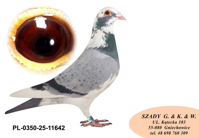 Witam. Gołąb pochodzi z hodowli Szady GKW. Szczegóły pochodzenia w rodowodzie. Zaszczepiony 16.09.2025 szczepionką RP VACC. Płatność za gołębia - przelew na konto. Transport będę organizował po zakończeniu wszystkich aukcji na początku grudnia. Koszt transportu indywidualnie w zależności od odległości i ilości gołębi. Więcej informacji pod nr tel. : 698 760 309.