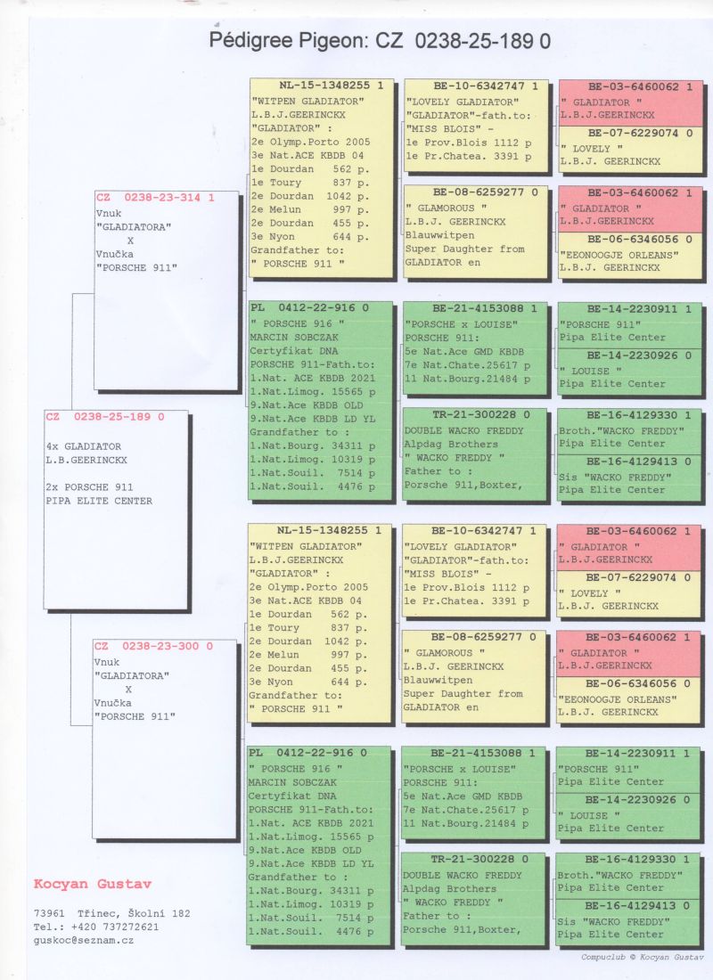 CZ-0238-25-189, Połączenie najlepszych lini hodowlannych z hodowli GEERINCKX i PIPA ELITE CENTER-"GLADIATOR-PORSCHE 911"