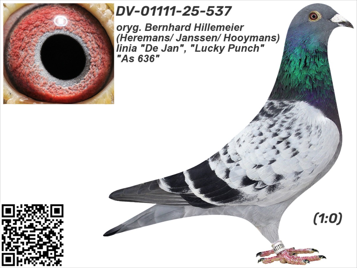 DV-02009-23-361 - oryg. ZG Lembke/Zietlow (Veenstra/ Prange), syn 29. As Vogel BRD 2020, wnuk najlepszego gołębia świata na średnim dystansie - DV-02098-19-1037 G. Prange