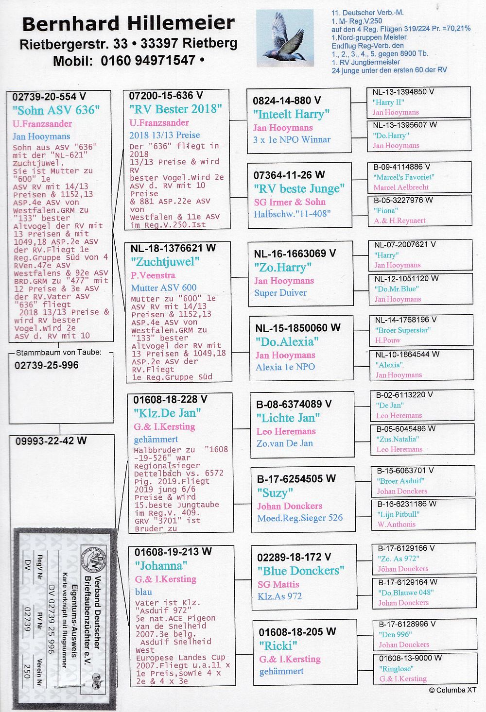 oryg. Bernhard Hillemeier (Hooymans/ Heremans), linia "As 636", "Harry", "Lichte Jan" Szczegóły pochodzenia w rodowodzie. Gołąb jest sprzedawany bezpośrednio od hodowcy i znajduje się w Polsce, można go obejrzeć w miejscowości Zblewo (woj. pomorskie), po wcześniejszym kontakcie telefonicznym. Więcej informacji o gołębiu i transporcie pod nr tel.: 511 607 710.