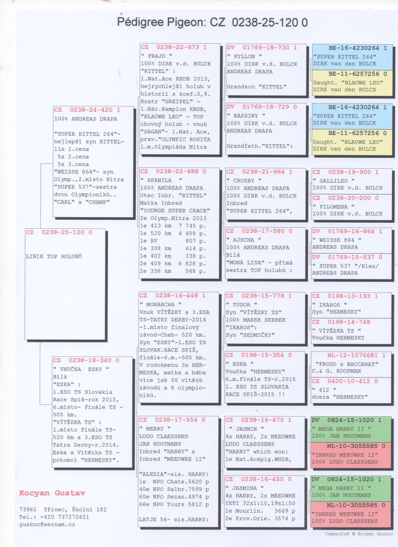 Gołąbek z hodowli Gustav Kocyan. Szczegóły pochodzenia w rodowodzie. Wysyłka kurierem po wcześniejszej wpłacie na konto w banku Polskim. Koszt transportu 150 zł.za paczke. Mile widziany jest także odbiór osobisty. Hodowca mówi po polsku.