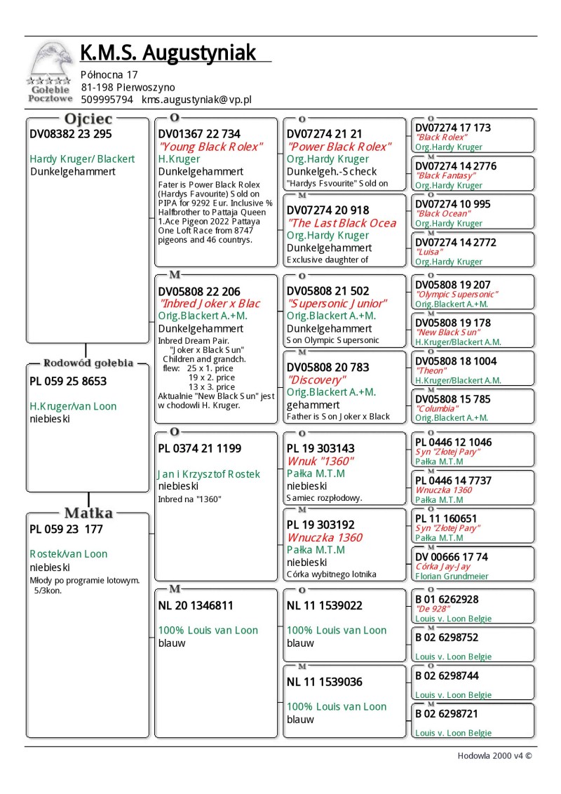 Oryginalny gołąb z hodowli KMS Augustyniak. Szczegóły pochodzenia w rodowodzie. Więcej informacji dotyczących gołębia jak i dostawy, pod nr tel.: 509 995 794