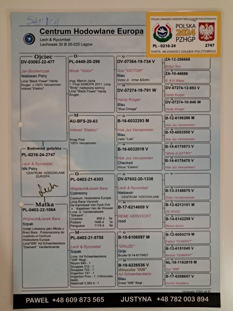 PL-0216-24-2747 oryg. Centrum Hodowlane Europa Linia "Black Power" Hardy Kruger x Linia Ad Schaerlaeckens "006"