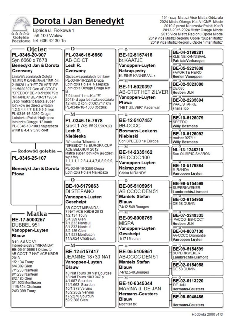 PL-0346-25-107 oryg. Benedykt Jan i Dorota 2024r. Mistrz Okręgu kat A i GMP Młode
