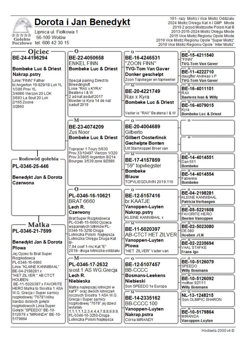 PL-0346-25-446 oryg. Benedykt Jan i Dorota 2024r. Mistrz Okręgu kat A i GMP Młode