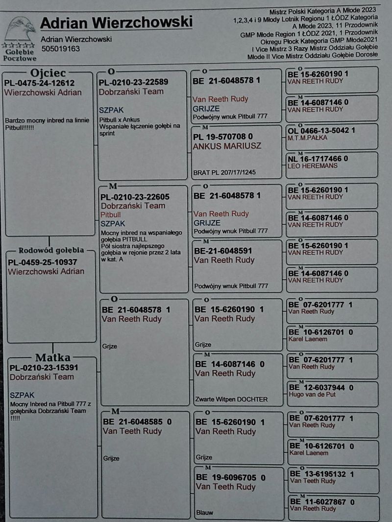Płeć: młody gołąb Hodowca - rasa: Wierzchowski Adrian Zakończenie: 1.12.2025 godz. 18:38