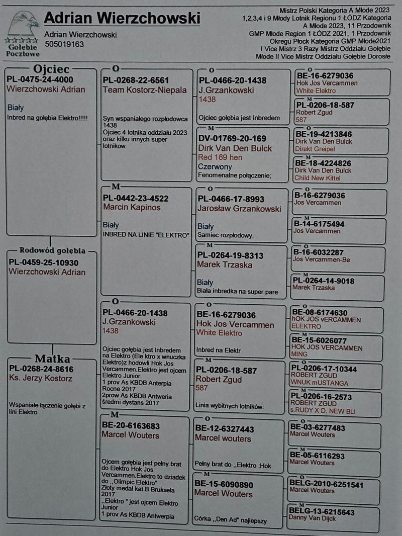 Płeć: młody gołąb Hodowca - rasa: Wierzchowski Adrian Zakończenie: 1.12.2025 godz. 18:32