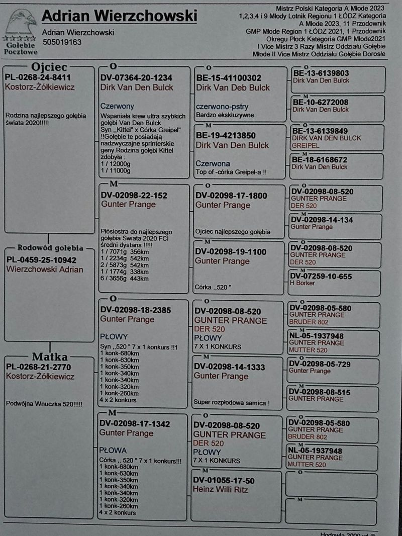 Płeć: młody gołąb Hodowca - rasa: Wierzchowski Adrian Zakończenie: 1.12.2025 godz. 18:28