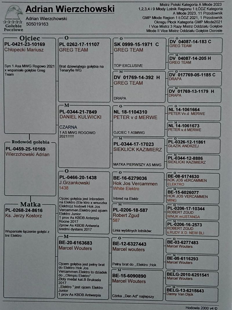 Płeć: młody gołąb Hodowca - rasa: Wierzchowski Adrian Zakończenie: 1.12.2025 godz. 18:24