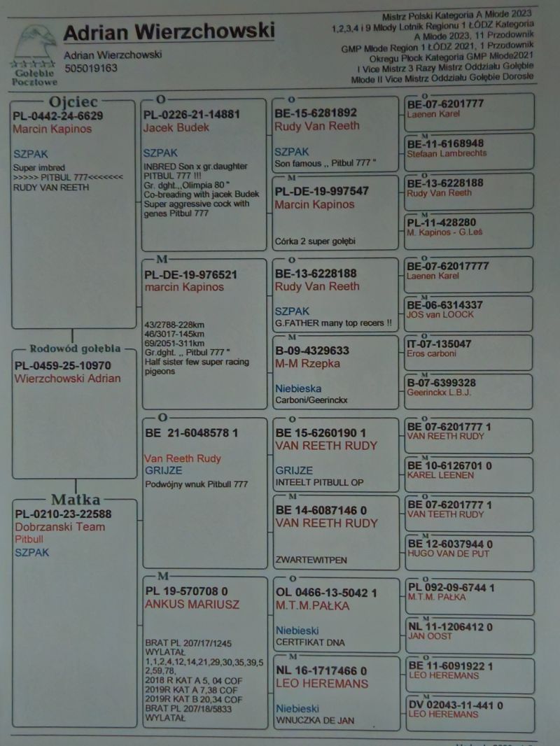 Płeć: młody gołąb Hodowca - rasa: Wierzchowski Adrian Zakończenie: 1.12.2025 godz. 18:18
