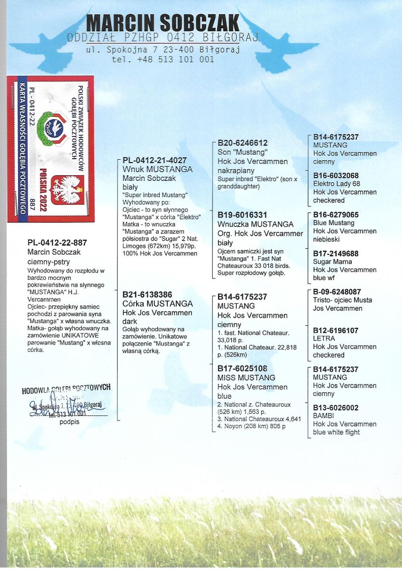 A z drugiej strony "6520". Wielu kuzynów osiąga sukcesy w lotach gołębi na wspólnych gołębnikach. Więcej informacji w rodowodzie oraz pod nr. tel. Uwaga WYSYŁKA 100ZŁ