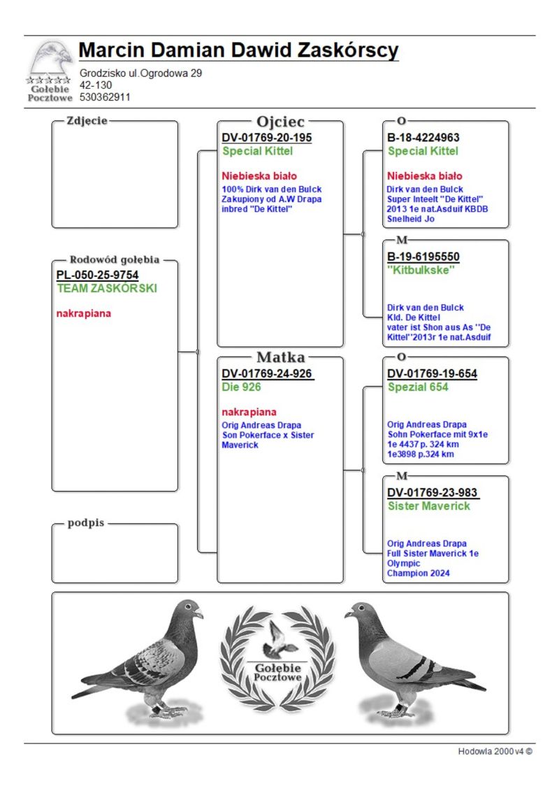 Płeć: młody gołąb Hodowca - rasa: TEAM ZASKÓRSKI Zakończenie: 2.12.2025 godz. 20:34