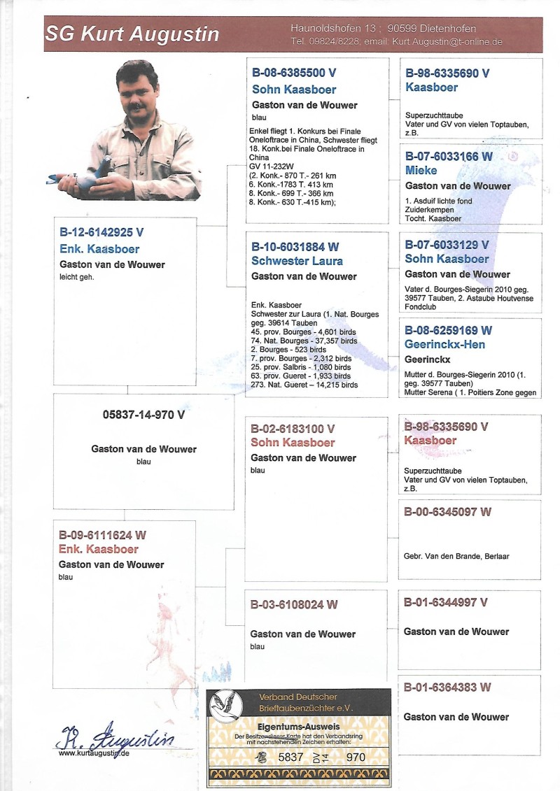 *prawdopodobnie samica* Oryginalny gołąb z hodowli Ryszard Lebiedziejewskiego. Szczegóły pochodzenia w rodowodzie. Więcej informacji pod nr tel.: 530 152 182. **Gołębie po kuracjach przygotowane do sezonu. **Transport gołębi prywatnym kurierem 130 zł do 3 szt. od 4szt do 6szt 150zł.