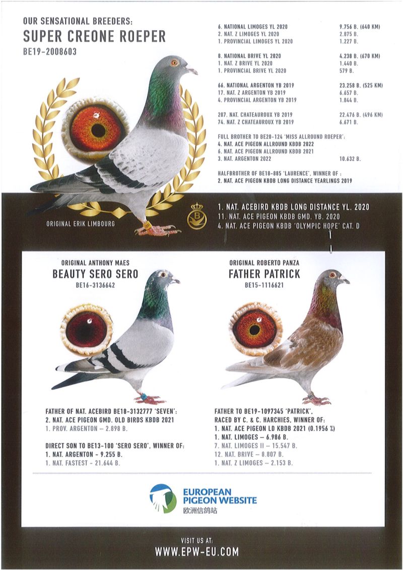PL-0260-25-6580 - "SUPER CREONE ROEPER", "777” – 5x1 konkurs "7955"- 1 Lotnik Okręgu oryg. Kosut K. & K. 85x1 konkurs