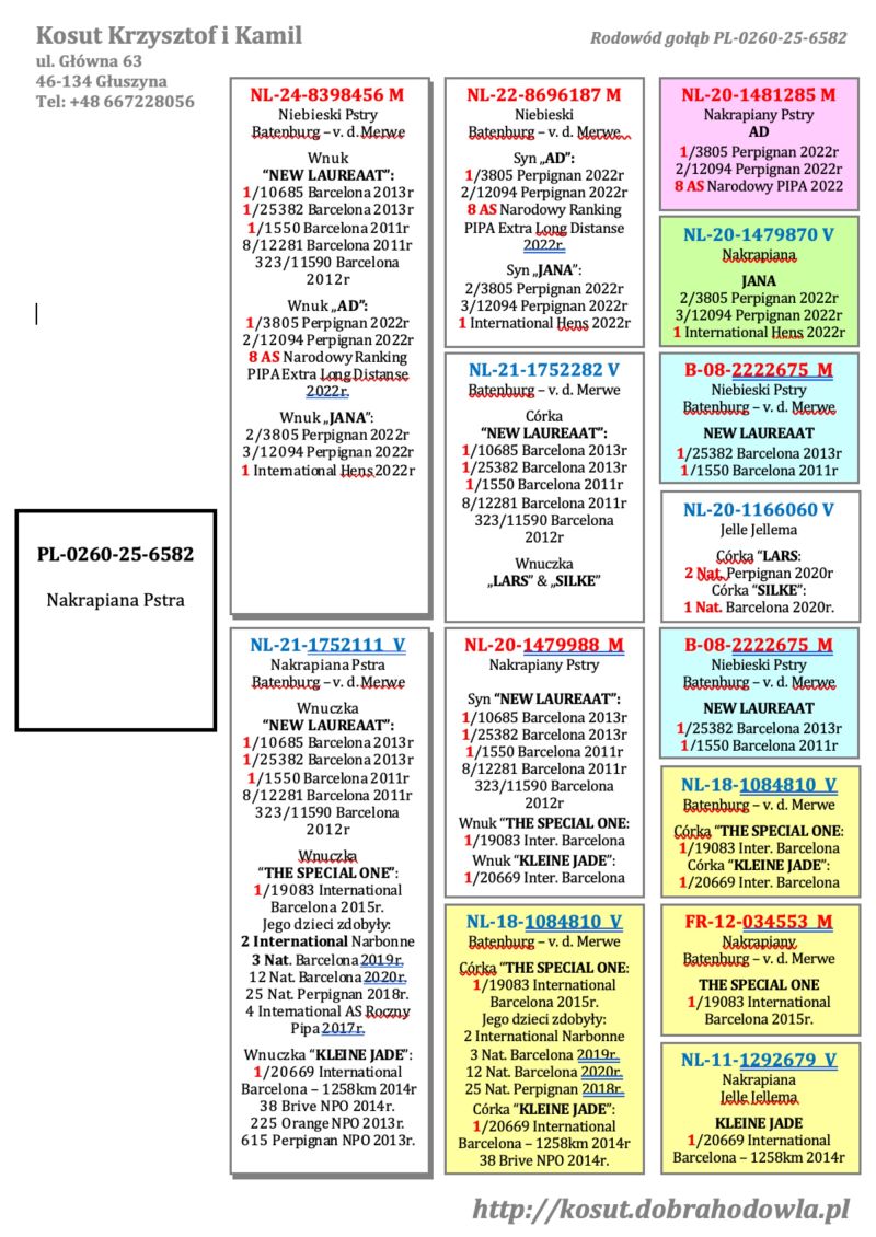 Oryginalny gołąb z hodowli Krzysztof i Kamil Kosut. Szczegóły pochodzenia w rodowodzie. Więcej informacji na stronie www.facebook.com/kosut.dobrahodowla oraz pod nr tel.: 667 228 056. Dostawa gołębi będzie realizowana po zakończeniu aukcji kurierem 165zł lub odbiór osobisty.