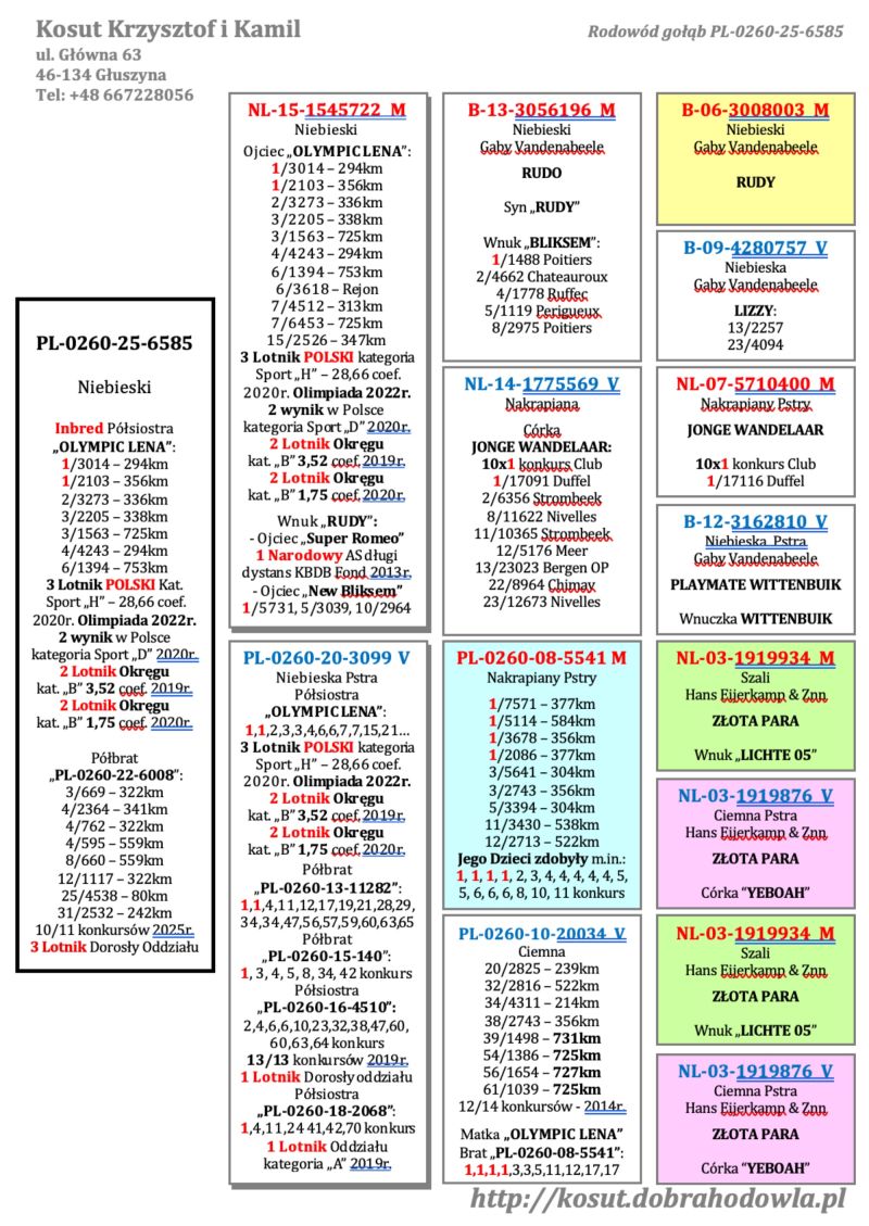 Oryginalny gołąb z hodowli Krzysztof i Kamil Kosut. Szczegóły pochodzenia w rodowodzie. Więcej informacji na stronie www.facebook.com/kosut.dobrahodowla oraz pod nr tel.: 667 228 056. Dostawa gołębi będzie realizowana po zakończeniu aukcji kurierem 165zł lub odbiór osobisty.