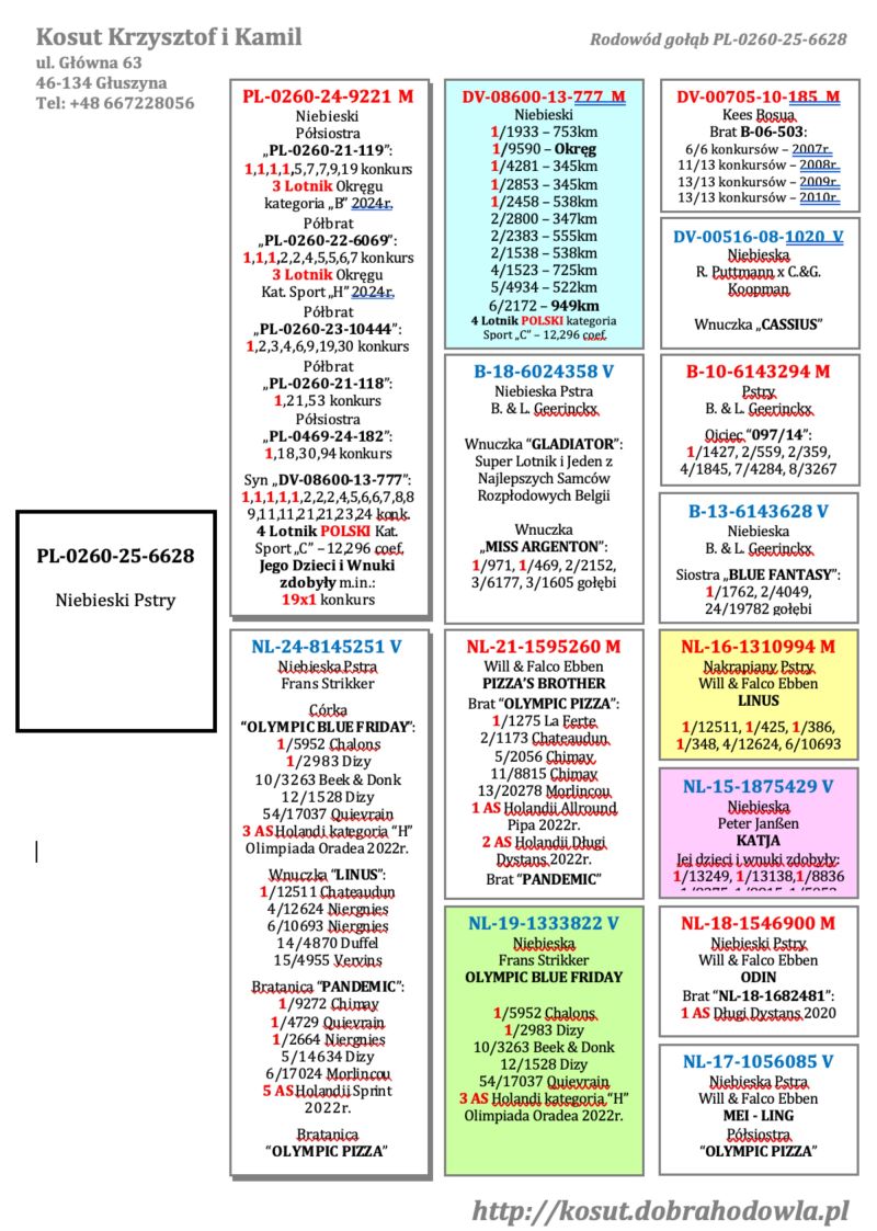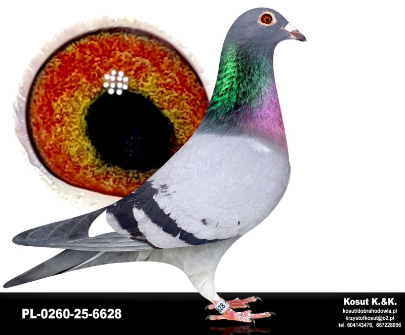 Oryginalny gołąb z hodowli Krzysztof i Kamil Kosut. Szczegóły pochodzenia w rodowodzie. Więcej informacji na stronie www.facebook.com/kosut.dobrahodowla oraz pod nr tel.: 667 228 056. Dostawa gołębi będzie realizowana po zakończeniu aukcji kurierem 165zł lub odbiór osobisty.