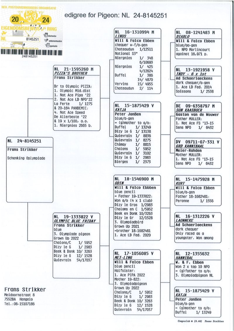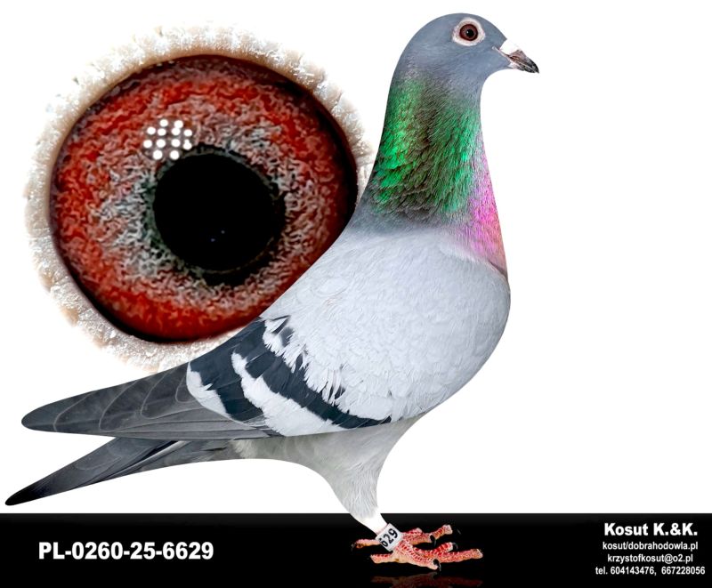 Oryginalny gołąb z hodowli Krzysztof i Kamil Kosut. Szczegóły pochodzenia w rodowodzie. Więcej informacji na stronie www.facebook.com/kosut.dobrahodowla oraz pod nr tel.: 667 228 056. Dostawa gołębi będzie realizowana po zakończeniu aukcji kurierem 165zł lub odbiór osobisty.
