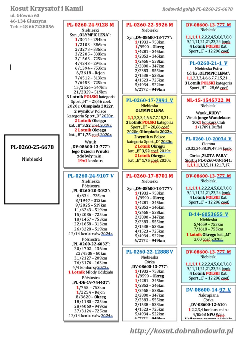 PL-0260-25-6678 – Syn "OLYMPIC LENA" 1,1,2,3,3 konkurs x Inbred „777” – 1,1,1,1,1 konkurs oryg. Kosut K. & K. 85x1 konk!