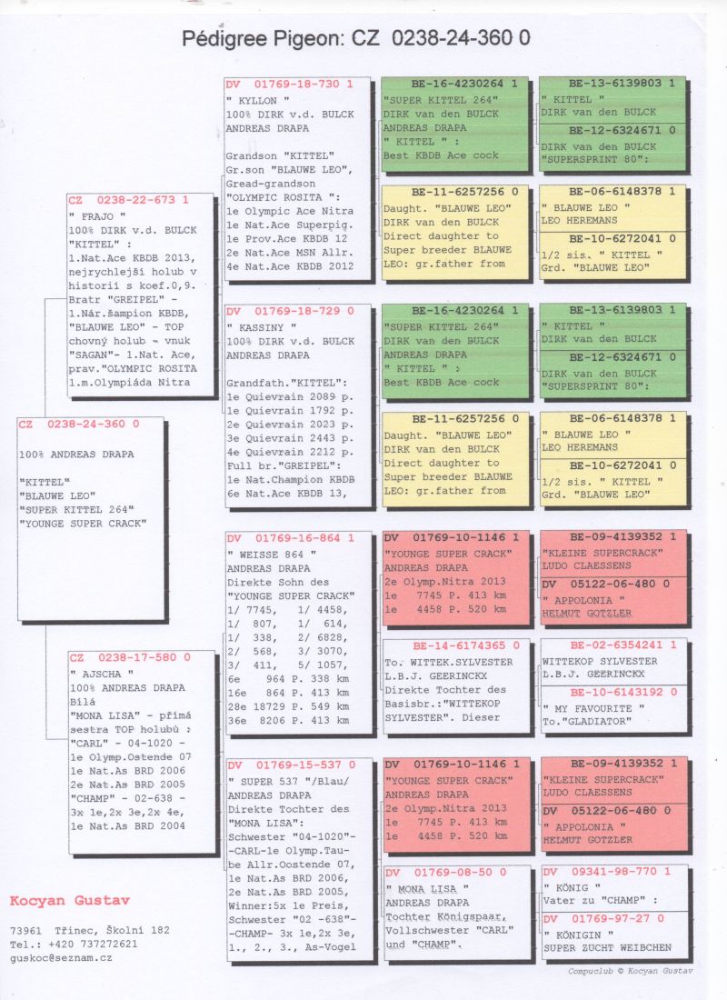 CZ-0238-24-360, Inbred "SUPER KITTEL 264" x Inbred Olimpijczyka "YOUNGE SUPER CRACK" - 100% ANDREAS DRAPA