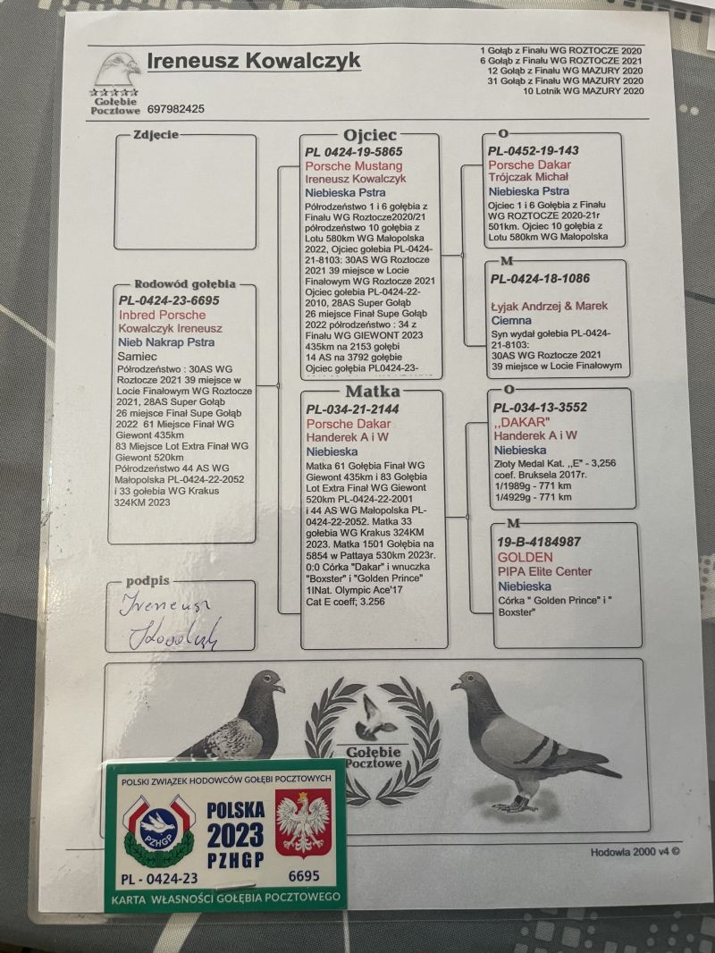 PL-0424-23-6695 - oryg. Ireneusz Kowalczyk - CERTYFIKAT DNA