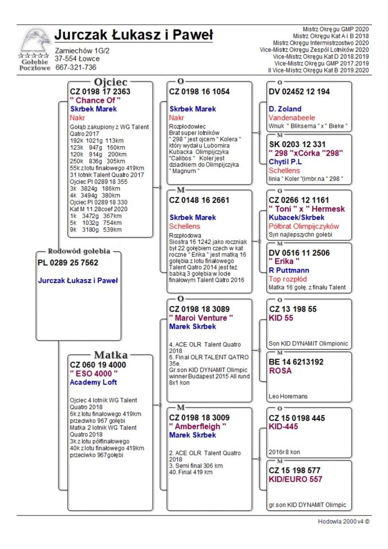 Oryginalny gołąb z Hodowli Jurczak Łukasz i Paweł.Szczegóły pochodzenia w rodowodzie lub po nr.telefonu 667321736 lub 697672645.Wysyłka kurierem 150 zł do 4 gołębi lub odbiór osobisty