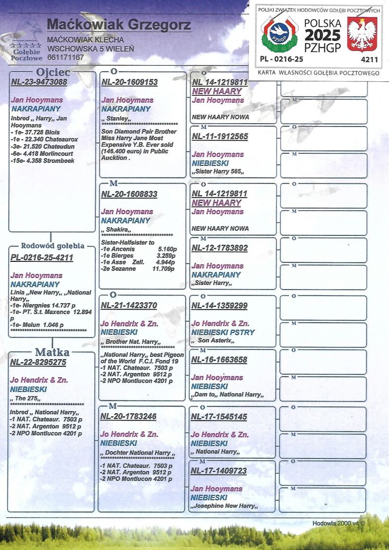 PL-0216-25-4211 Inbred Harry Jan Hooymans linia National Harry - ostatnie sztuki