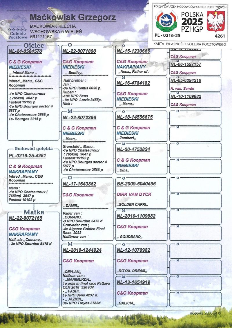 Płeć: młody gołąb Hodowca - rasa: G.M Zakończenie: 2.12.2025 godz. 21:36