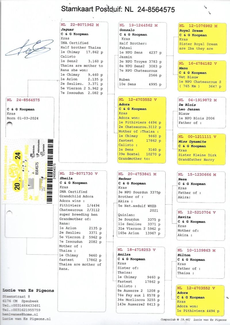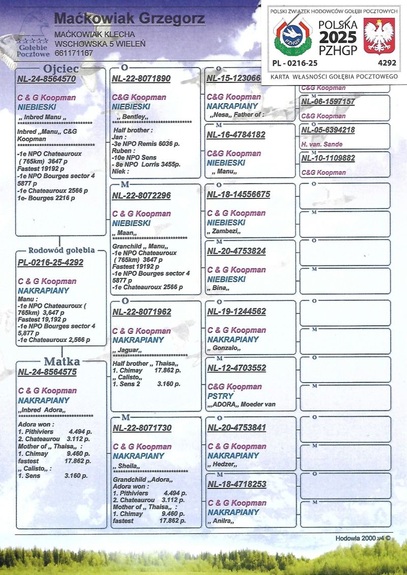 PL-0216-25-4292 Koopmn linia Manu 3x1 konkurs -Adora super samica rozplodowa . Ostatnie sztuki pozny golab