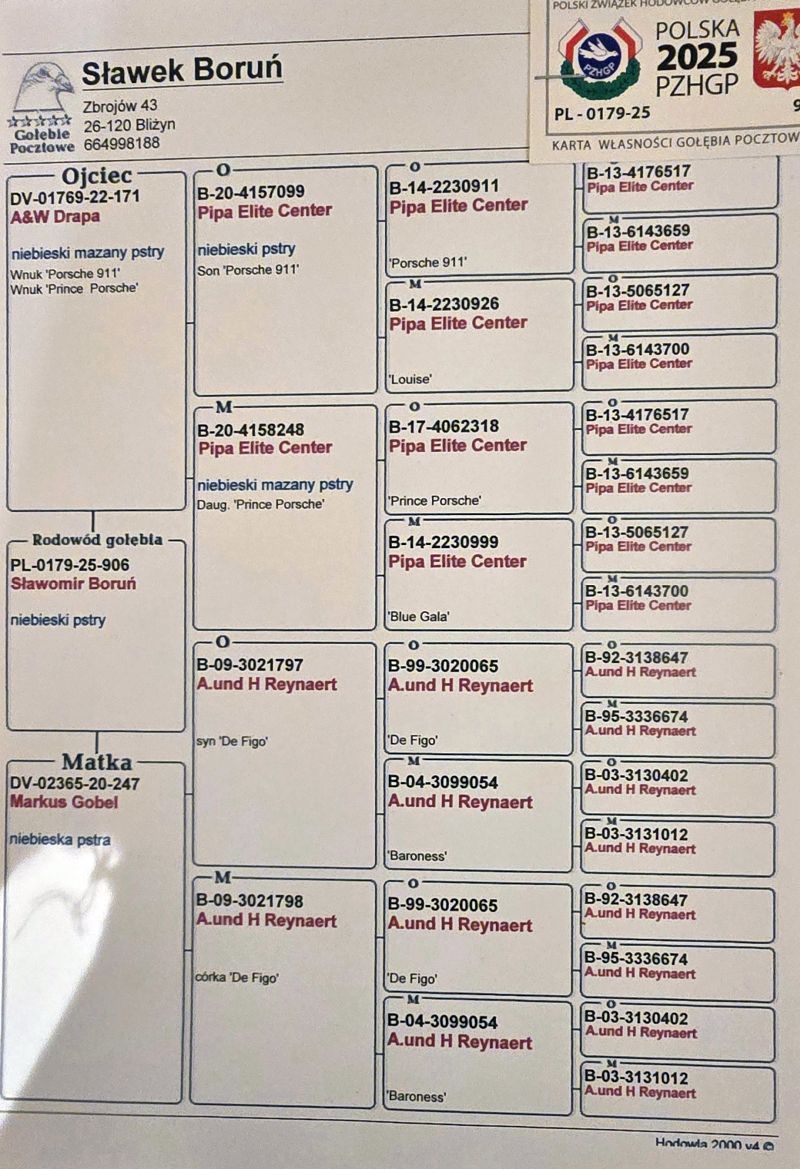 Oryginalny gołąb z hodowli Sławomira Borunia. Szczegóły pochodzenia w rodowodzie. Więcej informacji pod nr tel.: 664 998 188