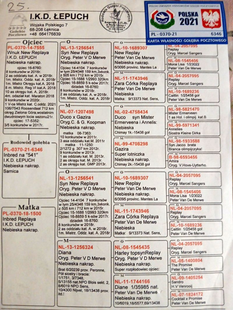 Oryginalny gołąb z hodowli IKD Łepuch. Szczegóły pochodzenia w rodowodzie. Więcej informacji pod nr tel.: 722185968 **Wysyłka od 1-4 ptaków 150 zł