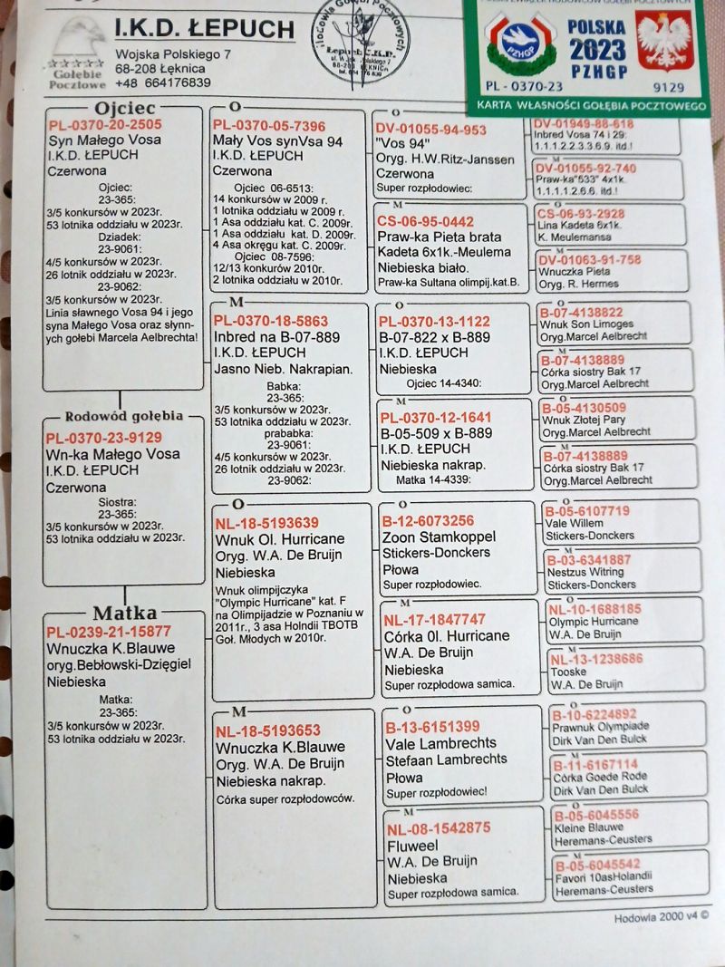 Oryginalny gołąb z hodowli IKD Łepuch. Szczegóły pochodzenia w rodowodzie. Więcej informacji pod nr tel.: 722185968 **Wysyłka od 1-4 ptaków 150 zł