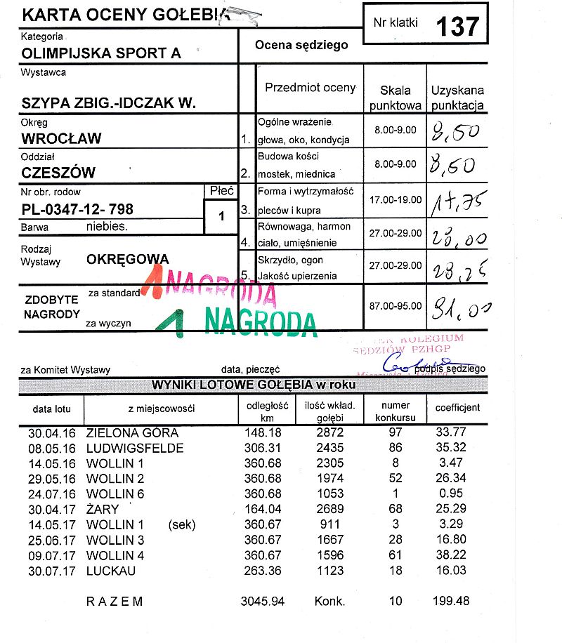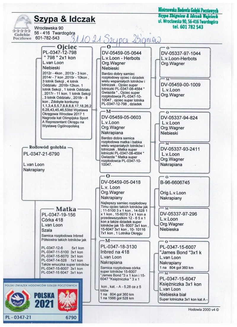 Oryginalny gołąb z hodowli Szypa-Idczak. Szczegóły pochodzenia w rodowodzie. Więcej informacji pod nr tel.: 507805142