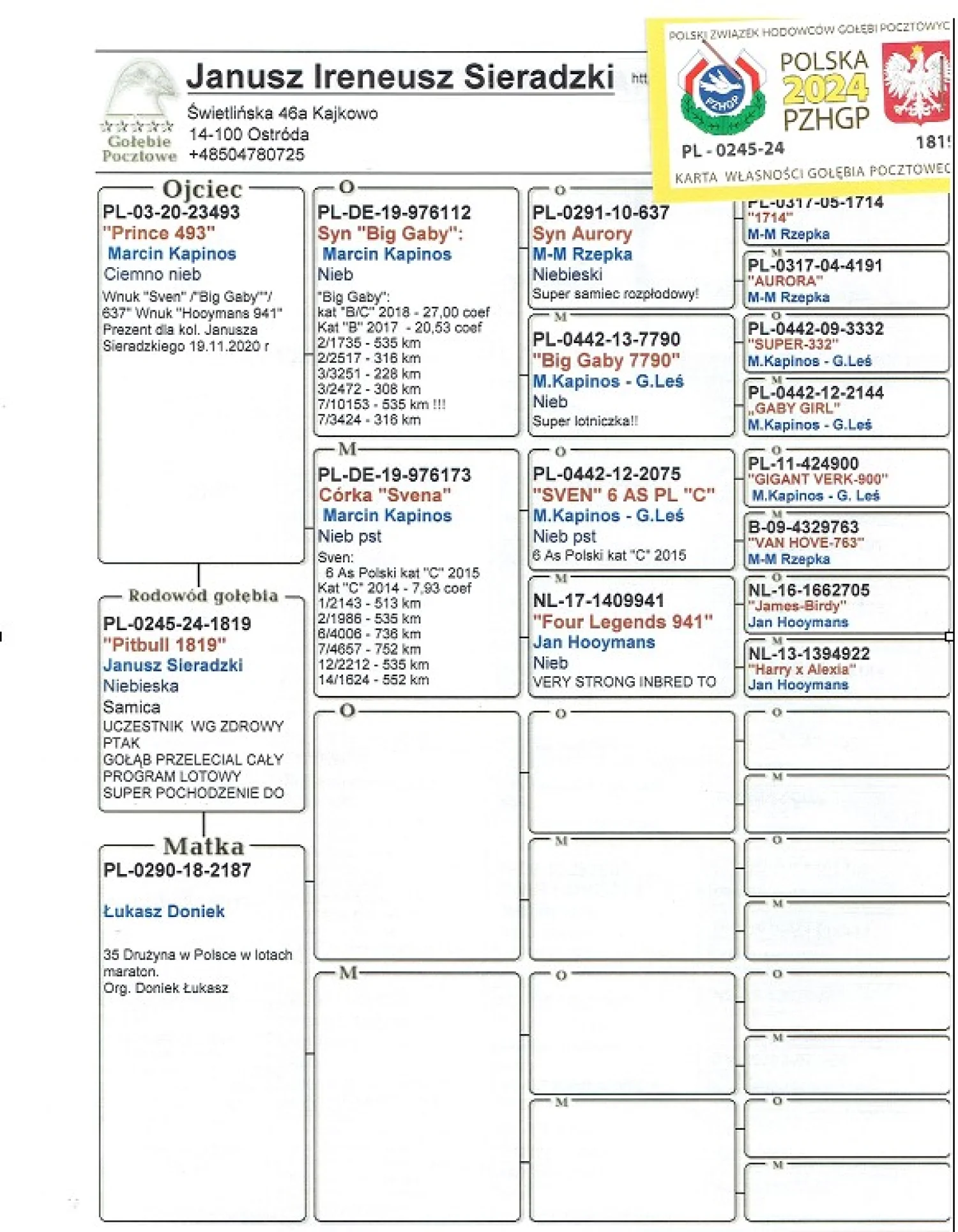 Oryginalny gołąb z hodowli Janusz Ireneusz Sieradzki Szczegóły pochodzenia w rodowodzie. Więcej informacji pod nr tel.: 507805142