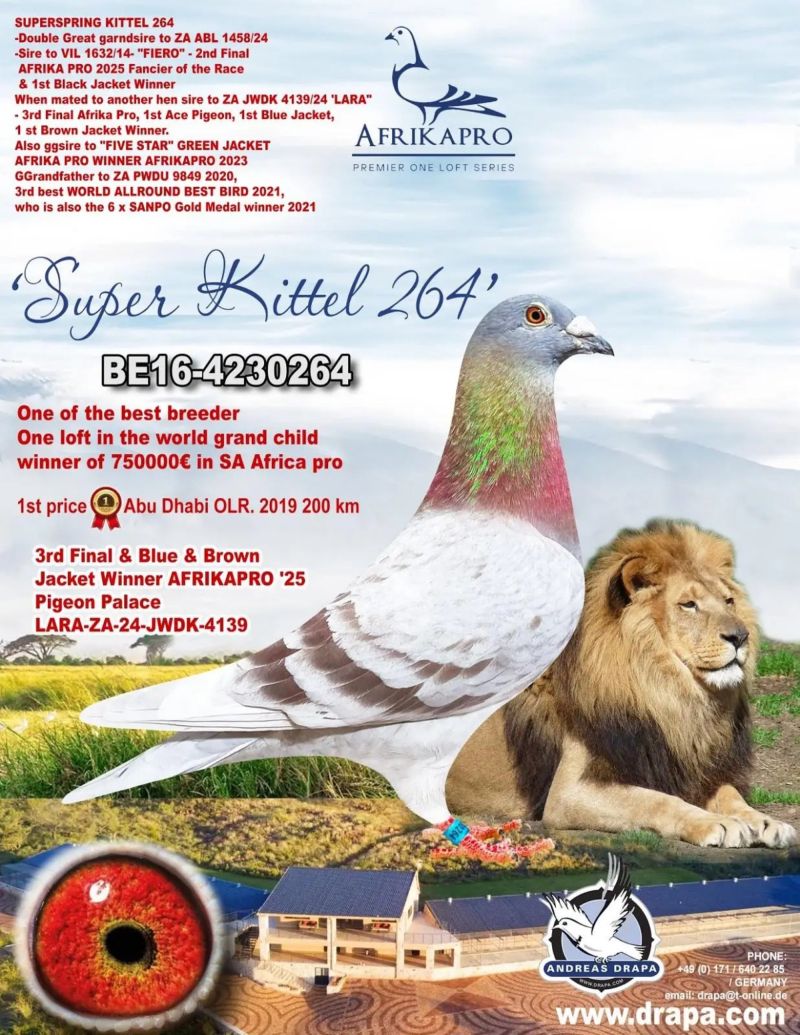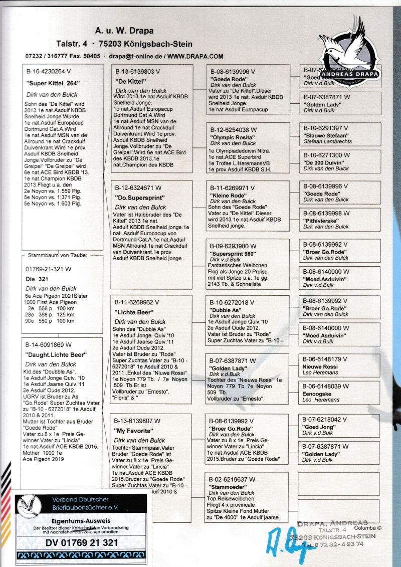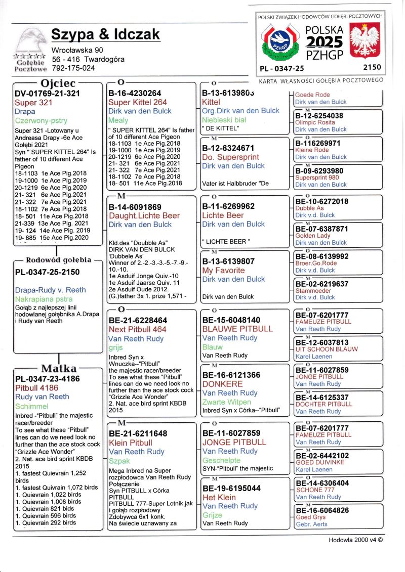 Profesjonalna hodowla z wieloletnim doświadczeniem, posiadająca w swoim stadzie materiał najwyższej światowej klasy. Więcej informacji w załączonych materiałach oraz pod nr tel. 792-175-024 Oferowany gołąb to prawdopodobnie SAMICA. Płeć pisana orientacyjnie Wysyłka 100 zł