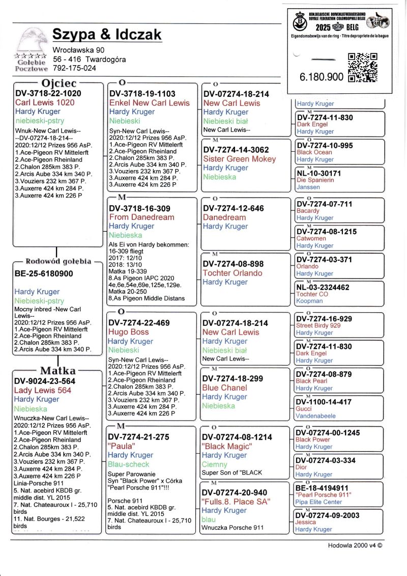 BE-25-6180900 100% HARDY KRUGER -INBRED NEW CARL LEWIS