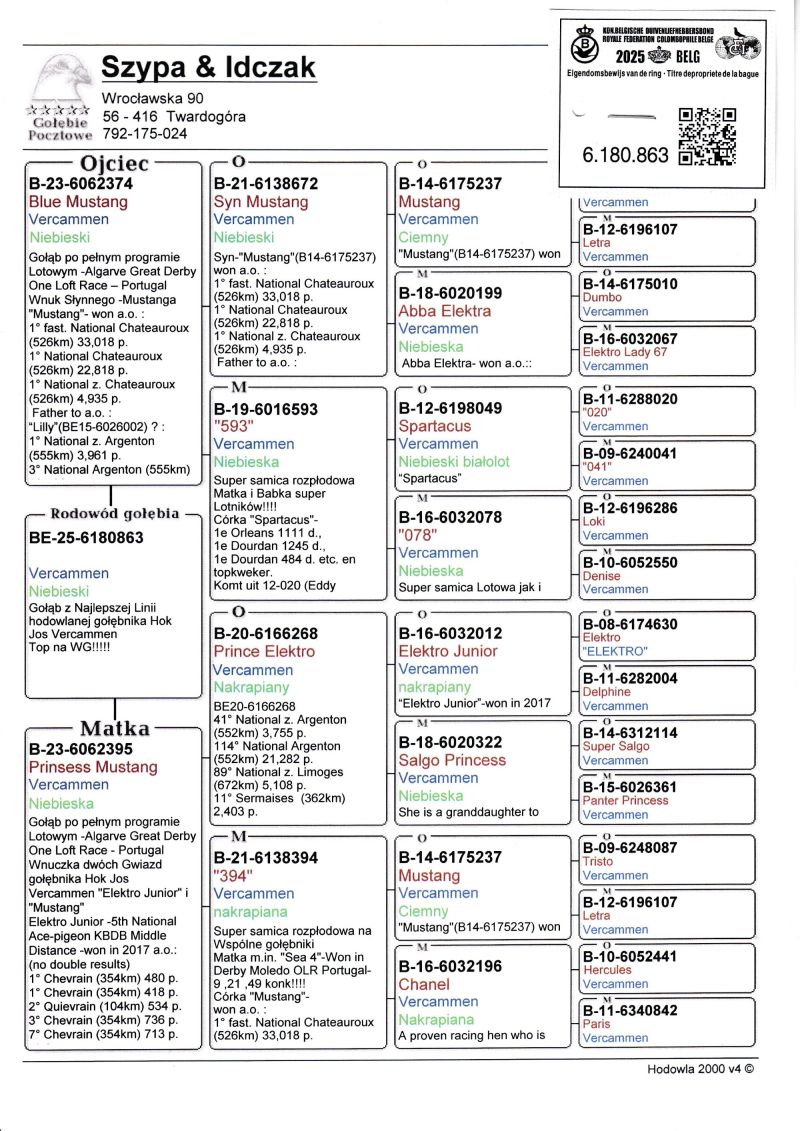 Profesjonalna hodowla z wieloletnim doświadczeniem, posiadająca w swoim stadzie materiał najwyższej światowej klasy. Więcej informacji w załączonych materiałach oraz pod nr tel. 792-175-024 Oferowany gołąb to prawdopodobnie SAMIEC. Płeć pisana orientacyjnie Wysyłka 100 zł