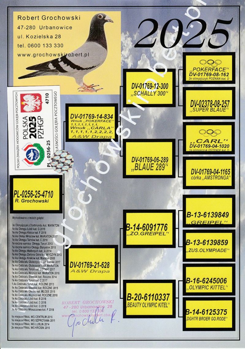 Oryginalny gołąb z hodowli Roberta Grochowskiego. Szczegóły pochodzenia w rodowodzie. Oferowany gołąb to prawdopodobnie SAMIEC. Więcej informacji pod numerem 600133330