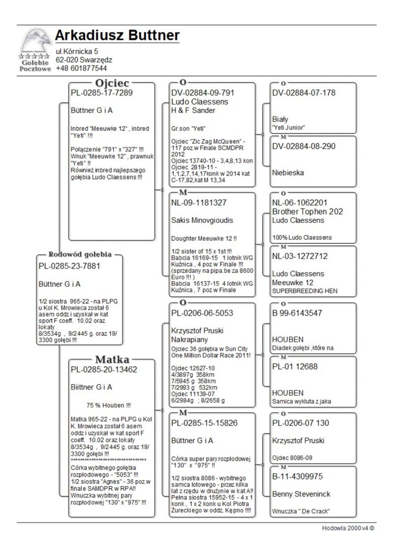 PL-0285-23-7881 Büttner G i A 1/2 SIOSTRA 6 ASA ODDZ KAT F 10,02 - CLAESSENS X HOUBEN, WNUCZKA 327 X 791, PRAWNUCZKA 547