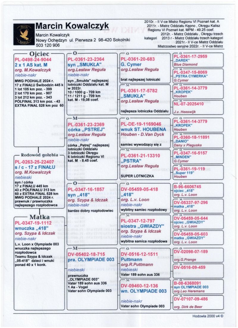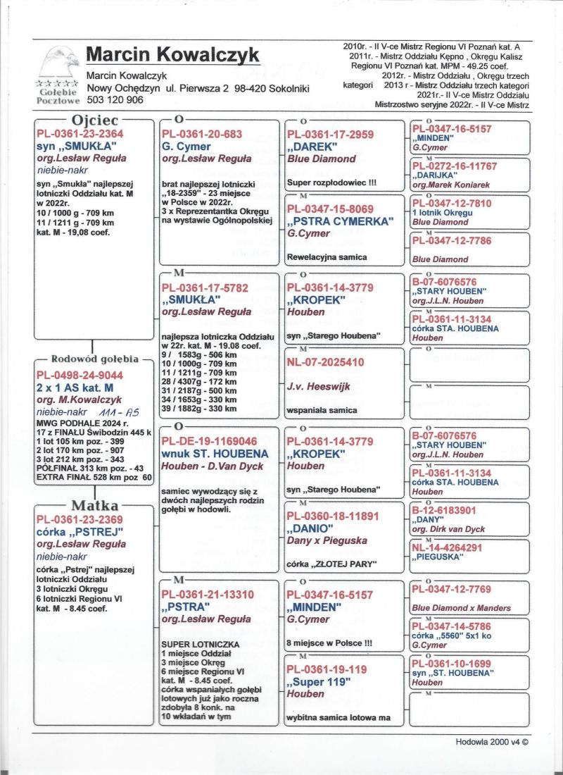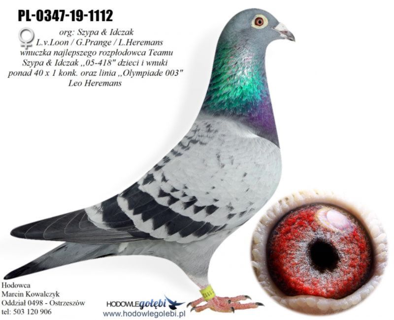 Oryginalny gołąb z hodowli Marcin Kowalczyk.# Szczegóły pochodzenia w rodowodzie. # Gołąb zaszczepiony przeciw Paramyxowirozie, Herpeswirus, Adenowirus , Ospa. # Więcej informacji pod nr tel. 503 120 906 # Możliwy transport koszt 1-3 szt. 120 zł , 3-6 szt. 140 zł # prawdopodobnie SAMIEC